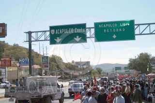 CHILPANCINGO, GUERRERO, 16NOVIEMBRE2004.-Campesinos, maestros y estudiantes que intengran la Promotora Estatal Contra el Neoliberalismo durante un plantón sobre la autopista del sol a la altura de la ciudad de Chilpancingo; justo al frente del lugar donde se desarrollaban las mesas de negociación con sus líderes para exigir se cumpla lo prometido por el gobernador René Juárez. FOTO: Oscar Alvarado/CUARTOSCURO.COM