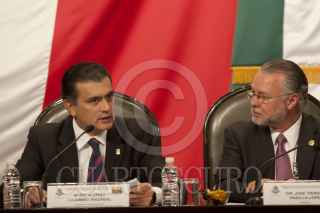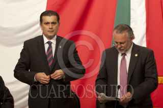 MÉXICO, D.F., 18OCTUBRE2011.- Alonso Lujambio, titular de la Secretaria de Educación Publica (SEP), acompañado de José Trinidad Padilla, Diputado del PRI, compareció ante la Comisión de Educación en la Cámara de Diputados por la glosa del informe del ejecutivo. FOTO: GUILLERMO PEREA/CUARTOSCURO.COM