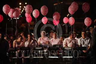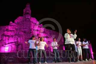 MERIDA, YUCATÁN, 20OCTUBRE2011.- Como parte de las actividades del Día mundial contra el cancer de mama, Ivonne Ortega Pacheco, gobernadora del estado y Angélica Araujo, alcaldesa del municipio, encendieron la iluminación en el Monumento a la Patria, como parte de las campaña para la prevención contra esta enfermadad. FOTO: FRANCISO BALDERAS/CUARTOSCURO.COM
