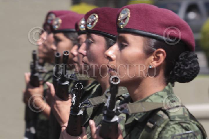 MÉXICO, D.F., 20OCTUBRE2011.- Soldados del 15avo. Batallón de Infantería, formaron parte del desfile que se realizó durante la ceremonia de entrega de condecoraciones a generales que pasaron a situación de retiro en la Explanada “Damián Carmona”, en el Campo Militar No. 1-A. FOTO: ENRIQUE ORDÓÑEZ/CUARTOSCURO.COM