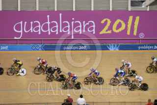 GUADALAJARA, JALISCO, 20OCTUBRE2011.- La mexicana Sofía Arreola ganó la presea de plata en la competencia de "scrath" Ciclismo de pista realizado en el Velódromo Panamericano de los Juegos Panamericanos Guadalajara 2011. FOTO: IVÁN STEPHENS/CUARTOSCURO.COM