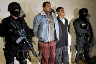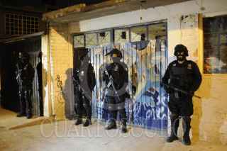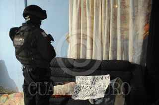 CHIMALHUACA, ESTADO DE MÉXICO, 20OCTUBRE2011.- Operativo parte de la Policía Federal donde logro la liberación de dos personas las cuales estaban secuestradas y por las que pedían un millón de pesos, así mismo se tuvo la detención de dos presuntos integrantes de la Familia Michoacana, ya que en el interior se encontraron cartulinas con narcomensajes y un machete con el cual cortaban partes del cuerpo de sus victimas; los hechos ocurrieron en la el numero 19 de la calle de Iturbide colonia San Miguel Acuitlapilco Municipio de Chimalhuacan. FOTO: LUIS CARBAYO/CUARTOSCURO.COM