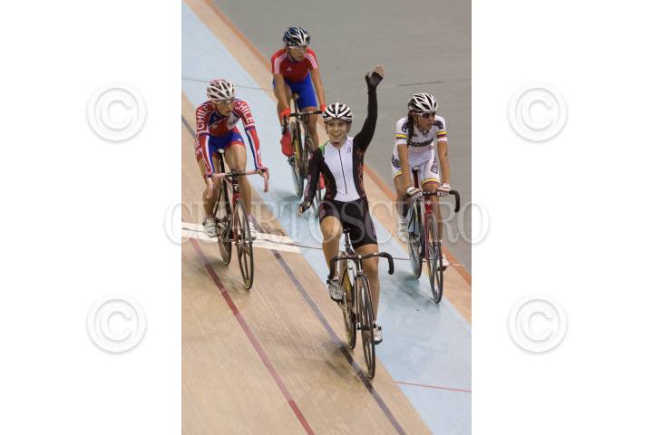 GUADALAJARA, JALISCO, 20OCTUBRE2011.- La ciclista Daniela Gaxiola festeja con el públicla medalla de plata que obtuvo en la competencia de Ciclismo de pista realizado en el Velódromo Panamericano de los Juegos Panamericanos Guadalajara 2011. FOTO: IVÁN STEPHENS/CUARTOSCURO.COM