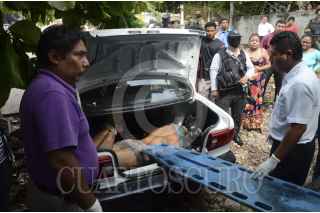 ACAPULCO, GUERRERO, 20OCTUBRE2011.- Dos hombre fueron encontrados ejecutado en la cajuela de un carro modelo Tsuru placas 228-TWU del Distrito Federal. Los dos cuerpos presentaban signos de tortura y uno de ellos fue decapitado y con un mensaje del crimen organizado. Policías ministeriales y el ejercito acudieron al lugar del hallazgo que se ubica en la colonia Jardín Azteca. FOTO: BERNANDINO HERNÁNDEZ/CUARTOSCURO.COM