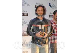 MORELIA, MICHOACÁN, 21OCTUBRE2011.- El actor Gael García Bernal, recibió un reconocimiento por su trayectoria y apoyo al cine nacional de una famosa marca de Tequila la tarde de hoy en el Teatro José Rubén Romero, en el marco del 9no Festival Internacional de Cine en Morelia.Lo acompañaron, Cuauthémoc Cárdenas Batel, Vicepresidente del Festival FOTO: FRANCISCO RODRÍGUEZ/CUARTOSCURO.COM