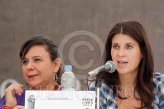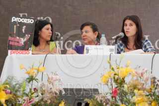 MÉXICO, D.F., 22OCTUBRE2011.- Marcela Turati, Gloria Leticia Díaz, Patricia Dávila, Rosalia Negrete, y María Scherer, durante la presentación de la revista Proceso "Heroínas anónimas" en el marco de la XI Feria Internacional del Libro del Zócalo. FOTO: MOISÉS PABLO/CUARTOSCURO.COM