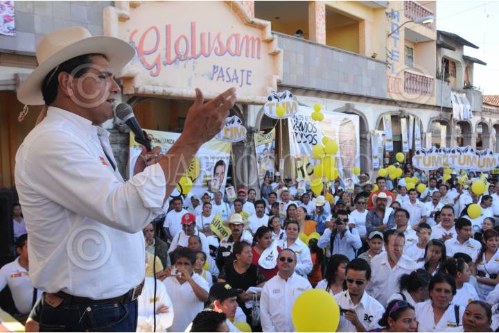 NAHUATZEN, MICHOACÁN, 22OCTUBRE2001.- Después de visitar Tazintaro lo cual hizo en helicóptero, el candidato del Partido de la Revolución Democrática a la gubernatura del estado, Silvano Aureoles Conejo visitó esta comunidad purépecha donde dirigió un mensaje a la población que se encontraba reunida en el centro de este poblado. FOTO: FRANCISCO RODRÍGUEZ/CUARTOSCURO.COM