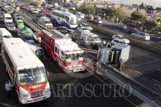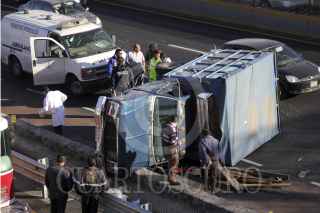 MÉXICO, D.F., 23OCTUBRE2011.- Una camioneta de 3 1/2 que transportaba madera, se volcó a la altura del kilómetro 20 de la autopista México -Puebla, con dirección a Puebla en donde una persona perdió la vida. FOTO: LUIS CARBAYO/CUARTOSCURO.COM
