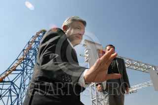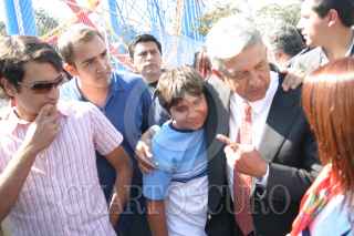 MEXICO, D.F. 18NOVIEMBRE2004.- Andrés Manuel López Obrador, jefe de gobierno del la ciudad de México, a su llegada a la inauguración de una nueva atracción en el parque de diversones Six Flags. FOTO: Nelly Salas/CUARTOSCURO.COM