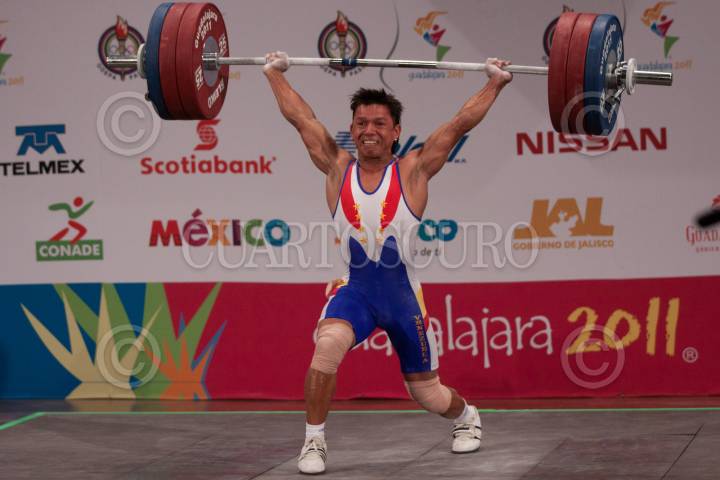 GUADALAJARA, JALISCO, 23OCTUBRE2011.- El colombiano Oscar Albeiro Figueroa durante su participación en la prueba de levantamiento de pesas realizado en el Foro de halterofilia de los Juegos Panamericanos Guadalajara 2011 obtuvo la medalla de oro además de romper el récord panamericano e imponer un nuevo récord olímpico. FOTO: IVÁN STEPHENS/CUARTOSCURO.COM