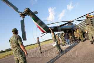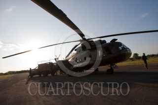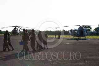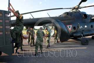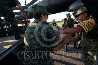 MACUSPANA, TABASCO, 240CTUBRE2011.- Elementos militares y de la Fuerza Aérea de la Secretaría de la Defensa Nacional adscritos a la Base Aérea Militar 16 y bajo el mando del Coronel Federico Nova Ramirez despacharon a las aeronaves con despensas del FONDEN en la fase de la aplicación del Plan DN-III-E que serán repartidas a los habitantes que se encuentran inundados por los desbordes de ríos que provocan las intensas lluvias. FOTO: MARCO POLO GUZMÁN HERNÁNDEZ/CUARTOSCURO.COM