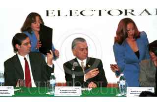 José Woldemberg, consejero presidente del Instituto Federal Electoral y Rafael Macedo de la Concha, Procurador General de la República firmarón un convenio de colaboración en materia de delitos electorales. FOTO:Oswaldo Ramírez/CUARTOSCURO.COM