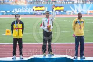 GUADALAJARA, JALISCO, 24OCTUBRE2011.- El mexicano Juan Luis Barrios se llevó la medalla de oro de la prueba de 5 mil metros planos, correspondientes a los Juegos Panamericanos Guadalajara 2011, con un crono de 14:13.77. FOTO: IVÁN STEPHENS/CUARTOSCURO.COM