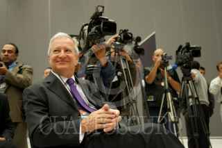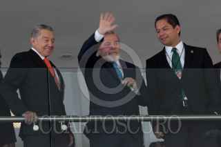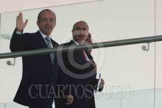 QUERÉTARO, QUERÉTARO, 25OCTUBRE2011.- Felipe Calderón, Presidente de México junto a José Calzada, gobernador de Querétaro durante su llegada a la clausura de los trabajos de la 9a Edición de la México Cumbre de Negocios. FOTO: DEMIAN CHAVEZ/CUARTOSCURO.COM