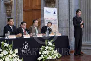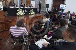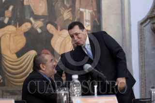 MÉXICO, D.F., 25OCTUBRE2011.- Raúl Plascencia Villanueva, presidente de la Comisión Nacional de Derechos Humanos, y Federico Fleischman, presidente de Libre Acceso, durante la Primera Jornada Nacional sobre Derechos Humanos y Personas con Discapacidad que se realizó en el edificio de la SEP. FOTOS: MOISÉS PABLO/CUARTOSCURO.COM