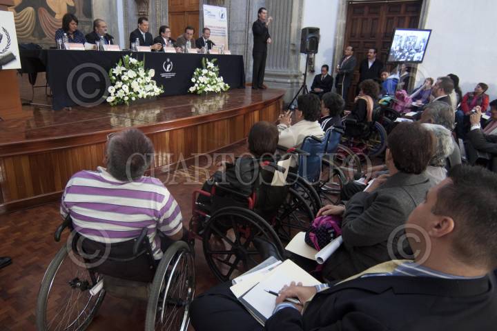 MÉXICO, D.F., 25OCTUBRE2011.- Raúl Plascencia Villanueva, presidente de la Comisión Nacional de Derechos Humanos, y Federico Fleischman, presidente de Libre Acceso, durante la Primera Jornada Nacional sobre Derechos Humanos y Personas con Discapacidad que se realizó en el edificio de la SEP. FOTOS: MOISÉS PABLO/CUARTOSCURO.COM