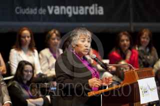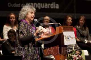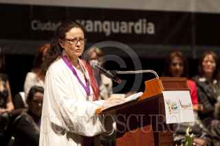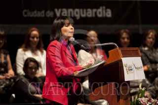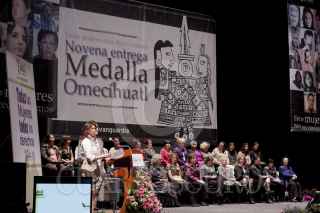 MÉXICO, D.F., 25OCTUBRE2011.- Lucía Lagunes Huerta, directora de Cimac, recibió la medalla Omecíhuatl, en una ceremonia realizada en el Teatro Esperanza Iris. FOTOS: MOISÉS PABLO/CUARTOSCURO.COM