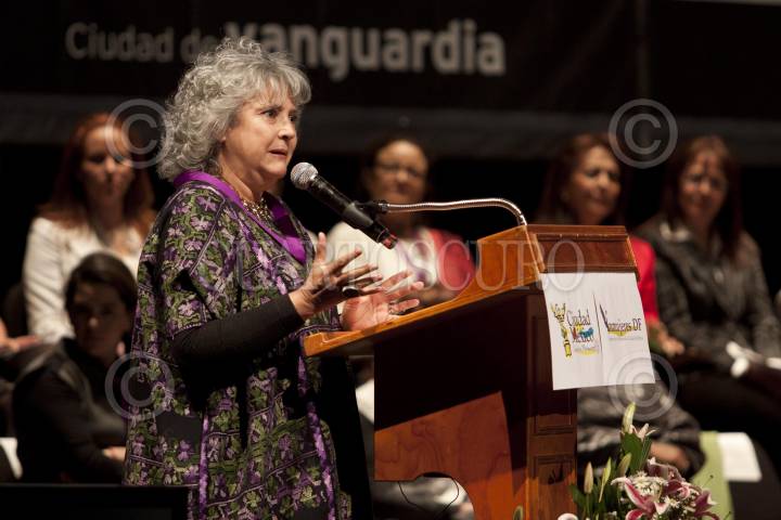 MÉXICO, D.F., 25OCTUBRE2011.- Lucía Lagunes Huerta, directora de Cimac, recibió la medalla Omecíhuatl, en una ceremonia realizada en el Teatro Esperanza Iris. FOTOS: MOISÉS PABLO/CUARTOSCURO.COM