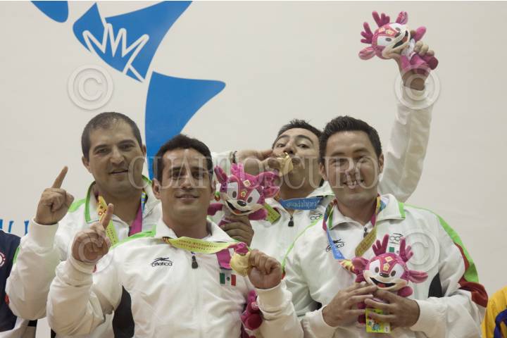 GUADALAJARA, JALISCO, 25OCTUBRE2011.- El equipo mexicano de Racquetbol obtuvo la medalla de oro luego de vencer a Estados Unidos en los Juegos Panamericanos Guadalajara 2011. FOTO: IVÁN STEPHENS/CUARTOSCURO.COM