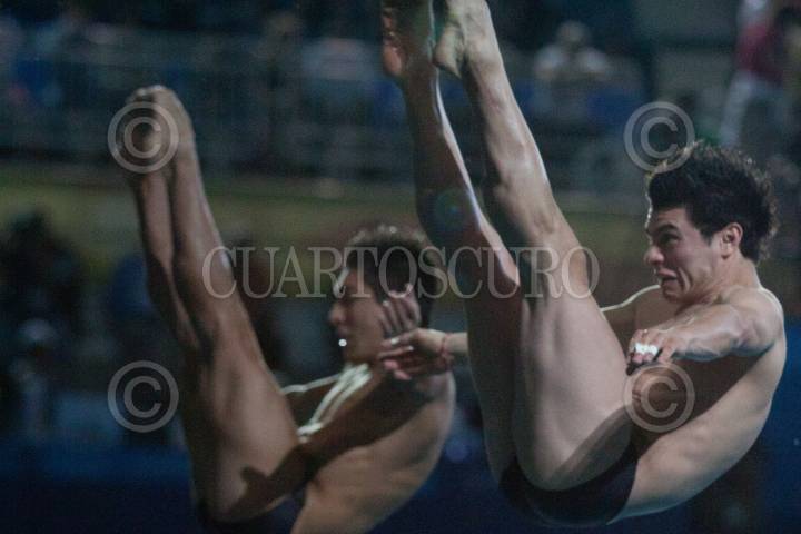 GUADALAJARA, JALISCO, 26OCTUBRE2011.-Yael García y Julián Sánchez obtuvieron la medalla de oro en clavados sincronizados de los Juegos Panamericanos Guadalajara 2011. FOTO: IVÁN STEPHENS/CUARTOSCURO.COM