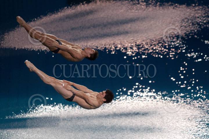 GUADALAJARA, JALISCO, 26OCTUBRE2011.-Yael García y Julián Sánchez obtuvieron la medalla de oro en clavados sincronizados de los Juegos Panamericanos Guadalajara 2011. FOTO: IVÁN STEPHENS/CUARTOSCURO.COM