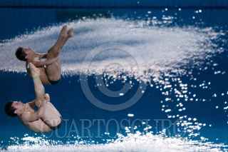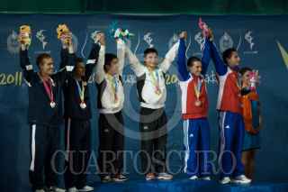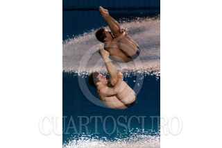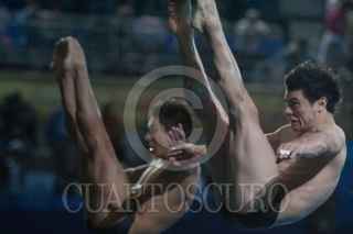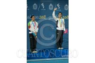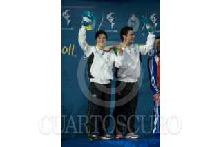 GUADALAJARA, JALISCO, 26OCTUBRE2011.-Yael García y Julián Sánchez obtuvieron la medalla de oro en clavados sincronizados de los Juegos Panamericanos Guadalajara 2011. FOTO: IVÁN STEPHENS/CUARTOSCURO.COM
