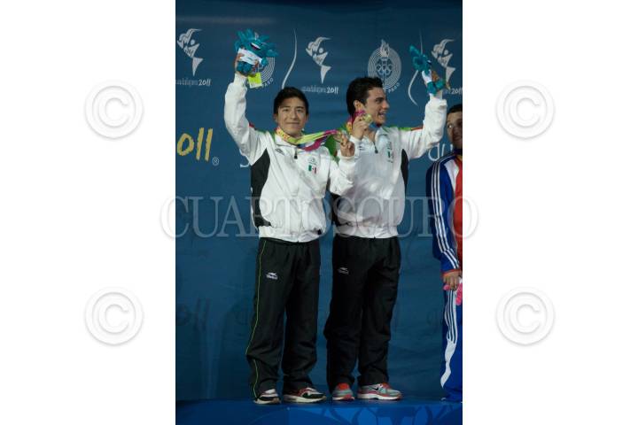 GUADALAJARA, JALISCO, 26OCTUBRE2011.-Yael García y Julián Sánchez obtuvieron la medalla de oro en clavados sincronizados de los Juegos Panamericanos Guadalajara 2011. FOTO: IVÁN STEPHENS/CUARTOSCURO.COM