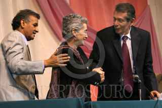 MEXICO, D.F. 19NOVIEMBRE2004.- Ahmed Mulay, embajador de la Repúplica Árabe Saharaui Democrática y Marta de la Lama durante la ceremonia de la constitución de la Asociación de la Amistad con la República Árabe Saharaui Democrática en la casa de la cultura Jesús Romero Flores. FOTO: Nelly Salas/CUARTOSCURO.COM