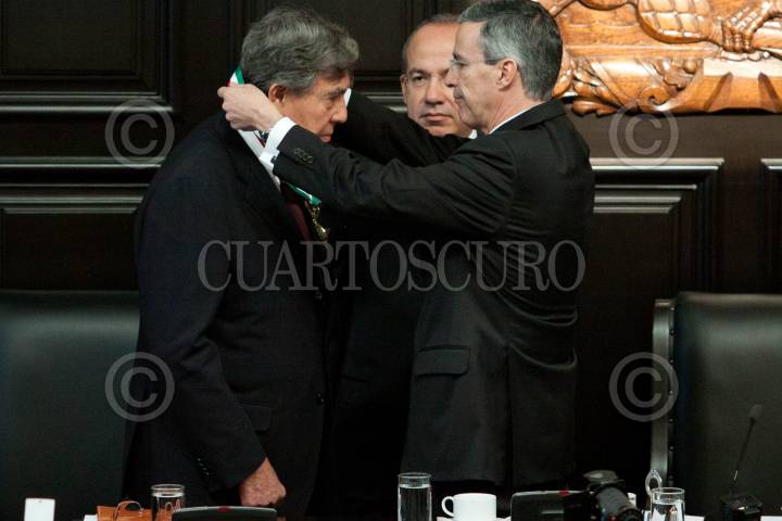 MÉXICO, D.F., 27OCTUBRE2011.- Cuauhtémoc Cárdenas Solorzano, recibió la medalla Belisario Domínguez en la antigua sede del Senado de la República. A la ceremonia asistieron Felipe Calderón Hinojosa, Presidente de México, José González Morfín, presidente de la mesa directiva de la Cámara Alta, Juan N. Silva Meza, presidente de la Suprema Corte de Justicia de la nación y Emilio Chuayffet, presidente de Cámara de Diputados. FOTO: MOISÉS PABLO/CUARTOSCURO.COM