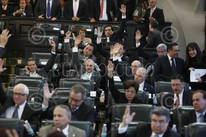 MÉXICO, D.F., 27OCTUBRE2011.- Los panistas Javier García Cervántes, y José González Morfín, presidente de la Cámara Alta, durante la sesión en la cual se aprobó el Paquete Económico 2012, la cual tuvó como particularidad que los parlamentarios sesionaron en la antigua sede del Senado FOTO: CUARTOSCURO.COM