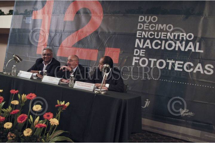PACHUCA, HIDALGO, 28OCTUBRE2011.- Durante el 12 Encuentro Nacional de Fototecas y el 35 Aniversario de la Fototeca Nacional, en el Cuartel del Arte, se inauguró la exposición "Mirada con vaivén de hamaca", de Joaquín Santamaría. El encuentro se realiza con la participación de todas las fototecas del país, historiadores, revistas e instituciones interesadas en la imagen fotográfica. FOTO: ADOLFO VLADIMIR/CUARTOSCURO.COM