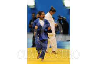 GUADALAJARA, JALISCO, 28OCTUBRE2011- La judoka Karina Paloma Acosta venció a la brasileña Katherine Campos, con lo que avanzó a la final en la categoría de menos de 63 kilos, en donde disputará la medalla de oro esta tarde. FOTO: FERNANDO CARRANZA GARCIA/CUARTOSCURO.COM