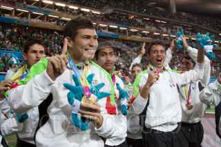 GUADALAJARA, JALISCO, 28OCTUBRE2011.- La seleccion mexicana obtuvo la medalla de oro luego de vencer a Argentina en el partido final de futbol de los Juegos Panamericanos uno a cero. FOTO: IVÁN STEPHENS/CUARTOSCURO.COM