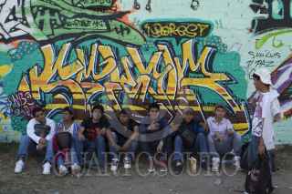 MÉXICO, D.F., 29OCTUBRE2011.- Cientos de jóvenes acudieron al Festival Cultural de Día de Muertos y Arte Ubano en donde realizaron pintas de grafiti en el deportivo Chavos Banda en la delegación Iztapalapa. FOTO: RODOLFO ANGULO/CUARTOSCURO.COM