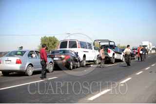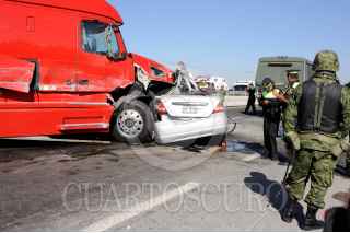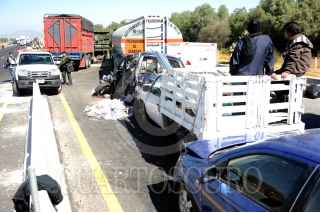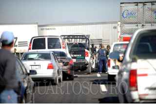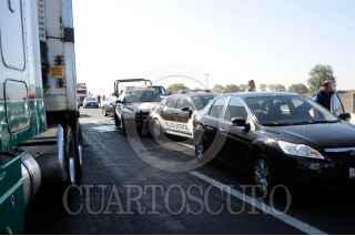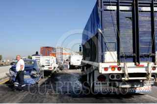 TULTEPEC, ESTADO DE MÉXICO, 29OCTUBRE2011.- Un sujeto perdió la vida aplastado en su auto en la carambola que se registro en Circuito Exterior Mexiquense a la altura del Km. 19 en Municipio de Tultepec, en el incidente participaron mas de 50 vehículos; trailers, autos particulares, policíacos y militares. FOTO: LUIS CARBAYO/CUARTOSCURO.COM