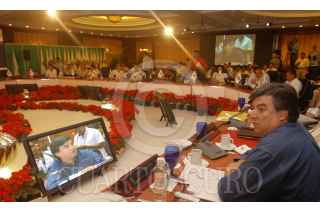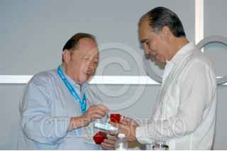 CANCUN, QUINTANA ROO, 26NOVIEMBRE2004.- León Halkin, presidente de la Concamin y Fernando Canales Clarión, Secretario de Economía durante la reunión de la Concamin. FOTO: Amaranta Prieto/CUARTOSCURO.COM