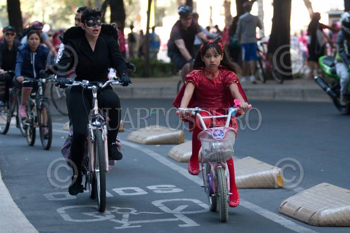 MÉXICO, D.F., 30OCTUBRE2011.- Ciclistas recorren parte de la avenida Paseo de la Reforma, durante el cicloton que se realiza cada domingo. FOTO: GUILLERMO PEREA/CUARTOSCURO.COM