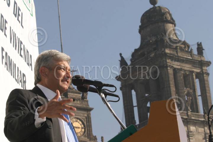 MEXICO, D.F. 26NOVIEMBRE2004.- Andrés Manuel López Obrador, Jefe de Gobierno y Marcelo Ebrard, Secretario de Seguridad Pública, al término de la conferencia matutina en el Antiguo Palacio del Ayuntamiento. FOTO: Moisés Pablo/CUARTOSCURO.COM