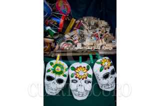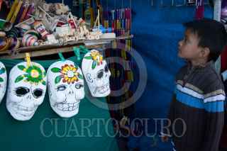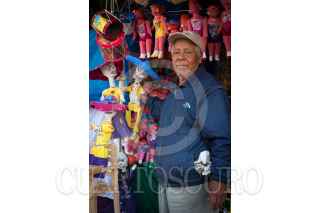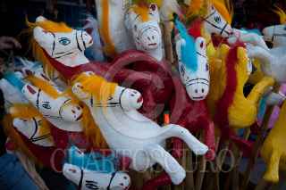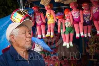 QUERÉTARO, QUERÉTARO, 29OCTUBRE2011.- Don Jesús Guerrero, artesano cartonero, se ha dedicado por más de 3 generaciónes a la elaboración de muñecas, calaveras, chacos, caballos de cartón. Originario de Celaya, Guanajuato, cada año elabora miles de estas artesanías para la tradicional vendimia en las fiestas de Corpus y Dias de Muertos. Actualmente sus ventas han bajado hasta en un 60 por ciento dada la entrada al mercado de artesanías de productos de plástico importados de Honk Kong, China. FOTO: DEMIAN CHÁVEZ/CUARTOSCURO.COM