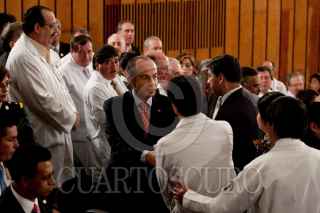 MÉXICO, D.F., 01NOVIEMBRE2011.- Felipe Calderón Hinojosa, Presidente de México, saluda a los médicos que asistieron a la ceremonia con motivo de la inauguración del nuevo edificio de Oncología del Hospital General de México. FOTO: MOISÉS PABLO/CUARTOSCURO.COM