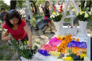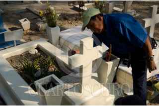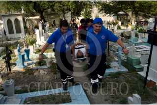 MÉXICO, D.F., 01NOVIEMBRE2011.- Un hombre de aproximadamente 60 años de edad sufrió una caída a consecuencia de una baja de presión arterial por lo que elementos de Protección Civil acudieron para darle auxilio, esta persona acudió a el Panteón Sanctorum a visitar a un familiar difunto en el marco de las festividades de Día de Muertos. FOTO: MISAEL VALTIERRA/CUARTOSCURO.COM