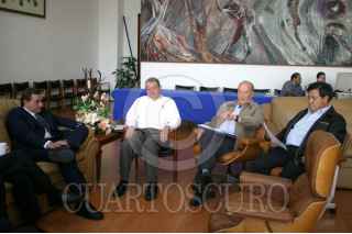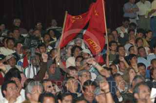 MEXICO, D.F. 27NOVIEMBRE2004.- Alberto Montoya, Manuel Camacho Solís, diputado federal, Pablo González Casanova y Rosendo Flores, secretario general del SME, previo a los Trabajos del Primer Diálogo Nacional por un Proyecto de Nación Alternativo al Neoliberalismo. FOTO: Nelly Salas/CUARTOSCURO.COM