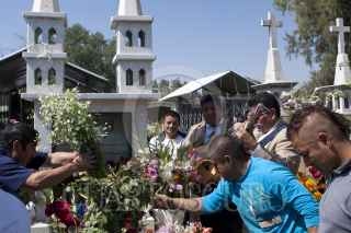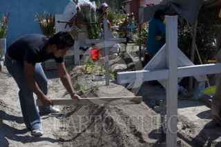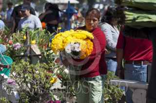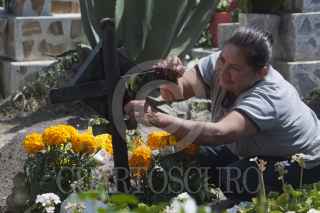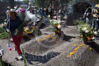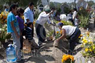 ZUMPANGO, ESTADO DE MÉXICO, 02NOVIEMBRE2011.- Cientos de familias acudieron al panteón de San Juan Zitaltepec con todo tipo de flores y utensilios para limpiar y visitar a sus seres queridos en este día de muertos. FOTO: RODOLFO ANGULO/CUARTOSCURO.COM