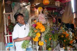 MÉXICO, D.F., 02NOVIEMBRE2011.- En el predio de Chihuahua núm. 95 habita desde hace 12 años, doña Heberta Cortes, Castillo quien es franelera y junto con otras familas ocupa el predio abandonado desde los sismos de 1985 en busca de la expropiación y vivienda digna. Doña Berta quien nació en el municipio de Tula Calnale Hidalgo quedó huerfana a los 4 años y a los 7 migró a la ciudad de México. Por esta razón Doña Berta no tiene cementerio alguno donde ir a dejarle flores a su madre Francisca Cortes Castillo y hermanos y cada año pone una ofrenda en su honor. FOTO: FRANCISCO RODRÍGUEZ/CUARTOSCURO.COM