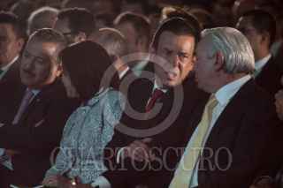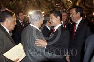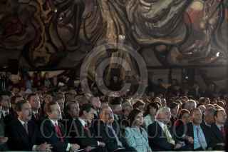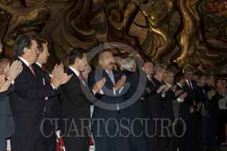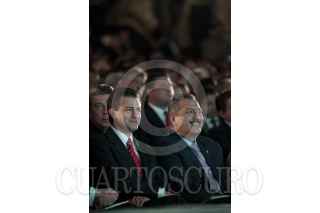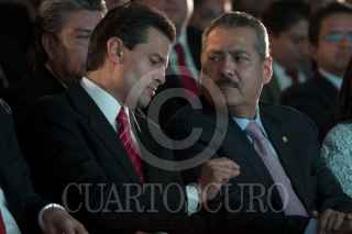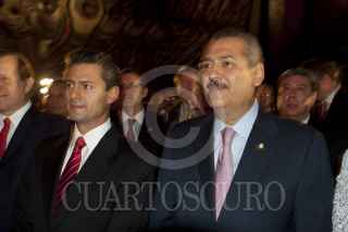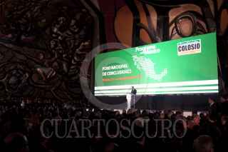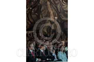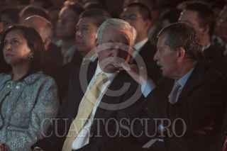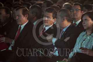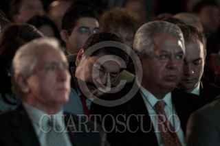 MÉXICO, D.F., 03NOVIEMBRE2011.- Los priistas Manlio Fabio Beltrones, coordinador de los senadores, Cristina Díaz, secretaria general del PRI, Humberto Moreira, dirigente nacional del PRI, y Marco Antonio Bernal, presidente de la Fundación Colosio, durante el "Foro Nacional de Conclusiones, Programa para México", impulsado por la Fundación Colosio, y el cual se realizó en Polyforum Cultural Siqueiros FOTO: MOISÉS PABLO/CUARTOSCURO.COM
