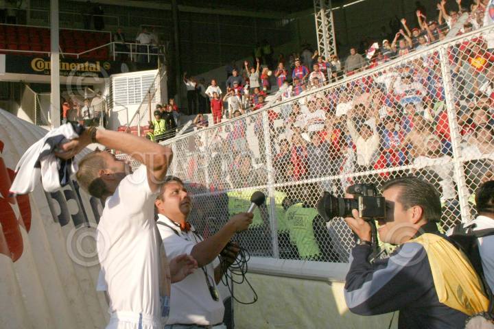 TOUCA, EDOMEX 27 NOVIEMBRE 2004.- José Saturnino Cardozo delantero del Toluca se llevo las manos al rostro al terminar el partido de cuartos de final del torneo de apertura 2004, en donde los Diablos del Toluca quedaron fuera de la Liguilla al perder contra Los Potros de Hierro del Atlante 4-3. FOTO: Eunice Adorno/CUARTOSCURO.COM