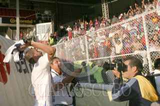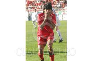 TOUCA, EDOMEX 27 NOVIEMBRE 2004.- José Saturnino Cardozo delantero del Toluca se llevo las manos al rostro al terminar el partido de cuartos de final del torneo de apertura 2004, en donde los Diablos del Toluca quedaron fuera de la Liguilla al perder contra Los Potros de Hierro del Atlante 4-3. FOTO: Eunice Adorno/CUARTOSCURO.COM
