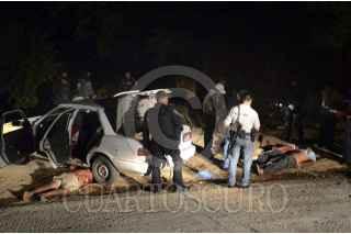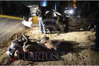 ACAPULCO, GUERREO, 03NOVIEMBRE2011.- 5 personas fueron ejecutadas en las primeras horas del jueves, vecinos de la Calle Niño Perdido, cerca del Jardín de niños "Antonio Nava de Catalán", en la Colonia María de la O , reportaron disparos así como la presencia de hombres muertos; al lugar acudieron agentes de la Policía municipal y estatal. En el lugar estaban tirados sobre la calle 5 individuos muertos alrededor y uno dentro de un taxi colectivo amarillo con blanco de la ruta Coloso; todos con impactos de bala en la cabeza, amarrados de pies y manos. "En el lugar se localizaron 19 casquillos del calibre 38 súper y los occisos quedan en calidad de desconocidos ya que no se localizaron identificaciones", señala el reporte ministerial. FOTO: BERNANDINO HERNÁNDEZ/CUARTOSCURO.COM