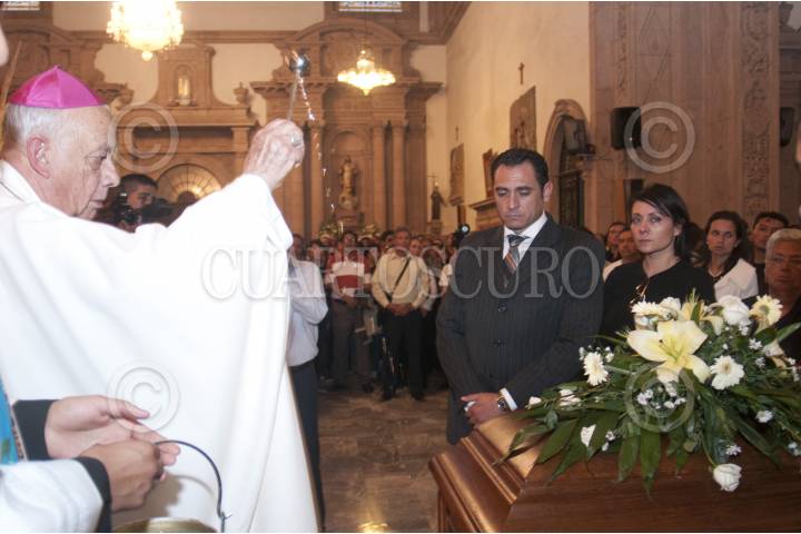 LAPIEDAD, MICHOACÁN, 03NOVIEMBRE2011.- Cientos de personas se reunieron dentro y fuera de la Parroquia del Señor de la Piedad la tarde de hoy para celebrar una misa en memoria del Alcalde, Ricardo Guzmán Romero, asesinado la noche de ayer mientras repartía propaganda electoral en el marco de las elecciones para gobernador que se realizaran en este estado el próximo 13 de Noviembre. FOTO: FRANCISCO RODRÍGUEZ/CUAERTOSCURO.COM