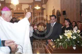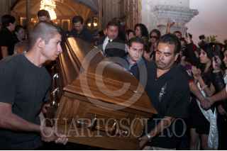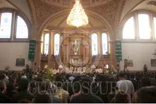 LAPIEDAD, MICHOACÁN, 03NOVIEMBRE2011.- Cientos de personas se reunieron dentro y fuera de la Parroquia del Señor de la Piedad la tarde de hoy para celebrar una misa en memoria del Alcalde, Ricardo Guzmán Romero, asesinado la noche de ayer mientras repartía propaganda electoral en el marco de las elecciones para gobernador que se realizaran en este estado el próximo 13 de Noviembre. FOTO: FRANCISCO RODRÍGUEZ/CUAERTOSCURO.COM